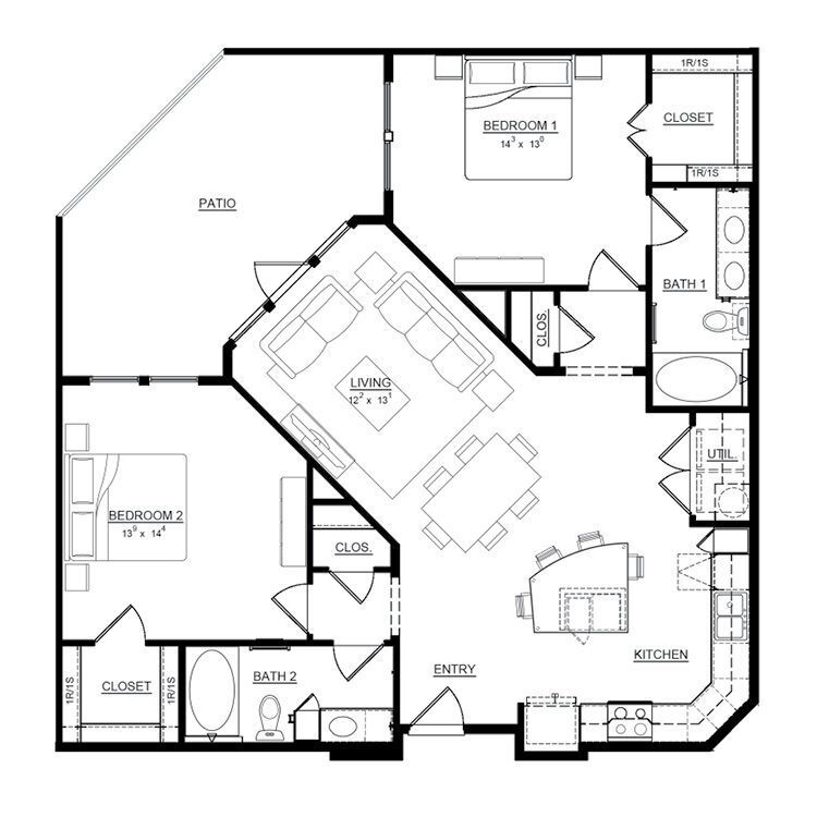 2 Beds, 2 Baths, 1110 sq ftModel Gallery