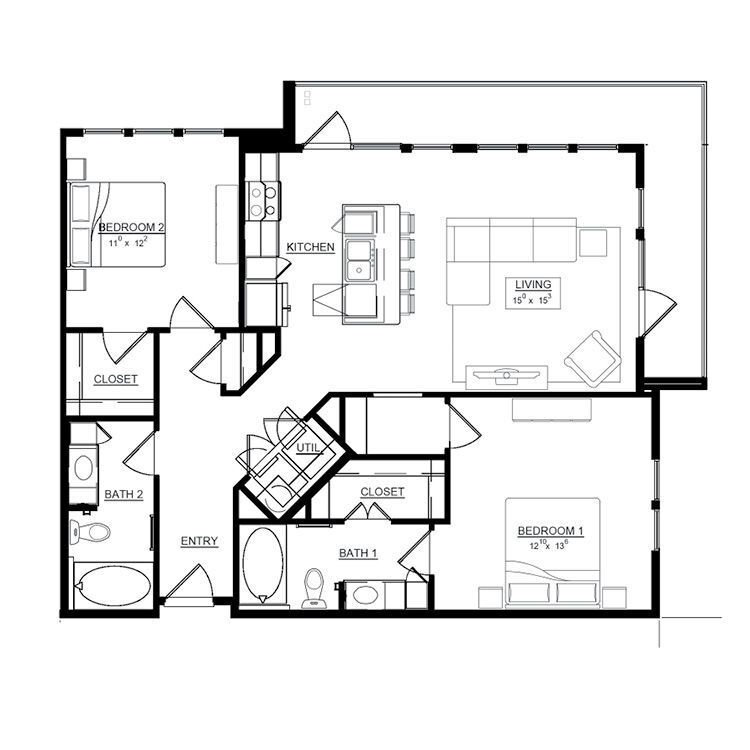 2 Beds, 2 Baths, 1150 sq ftModel Gallery