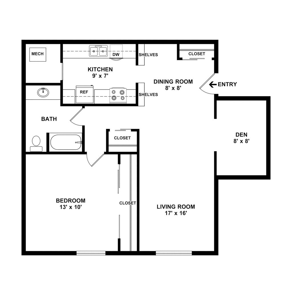 Apartment Model: The Elm-UpFrom $1,1991 Bedroom, 1 Bath, 650 sq ftAvailable Now![]()