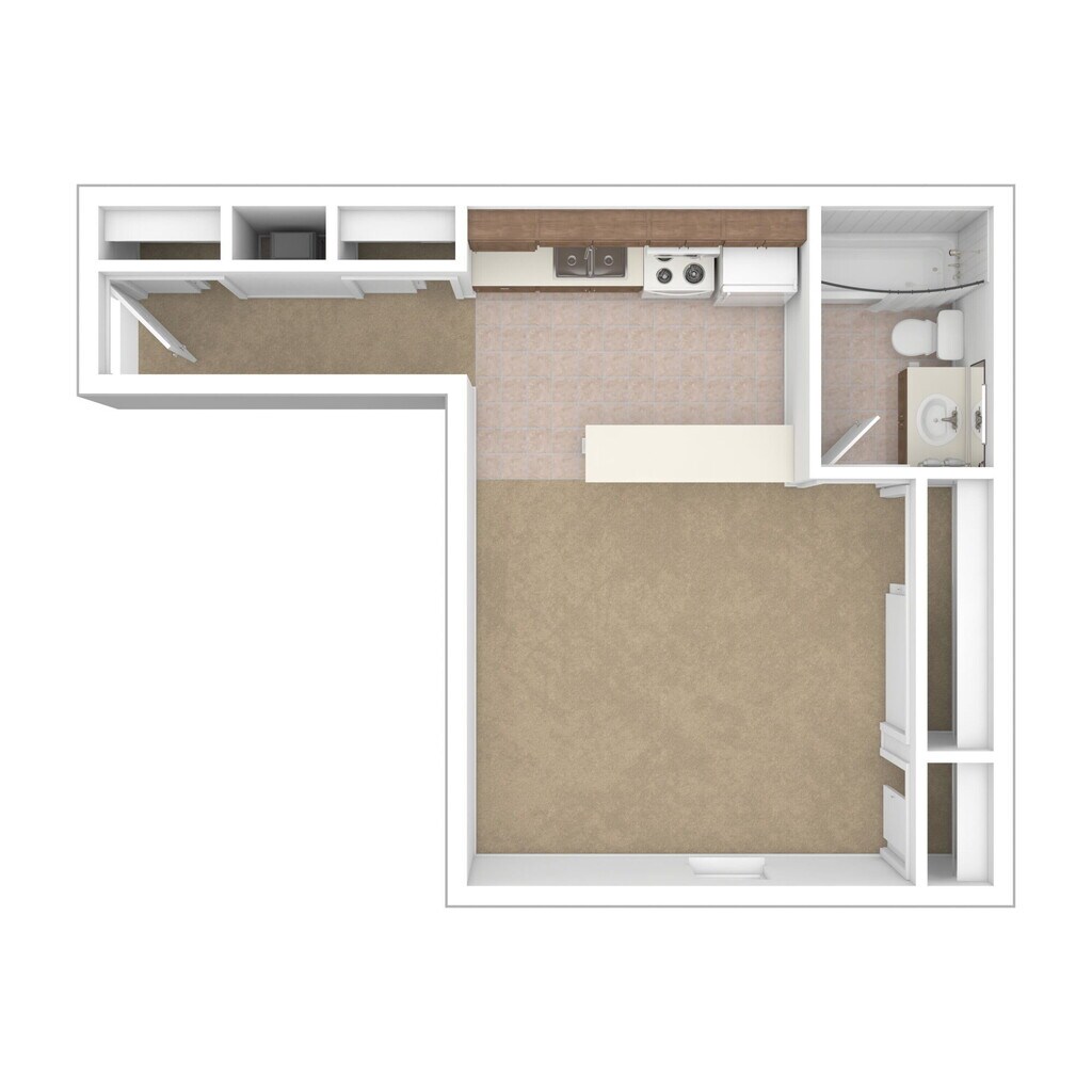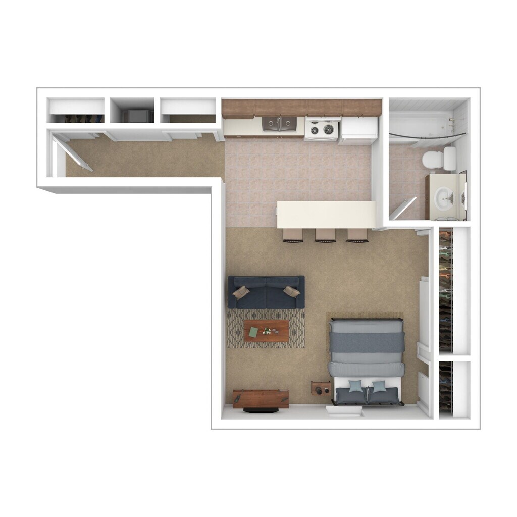 Studio, 1 Bath, 500 sq ftModel Gallery