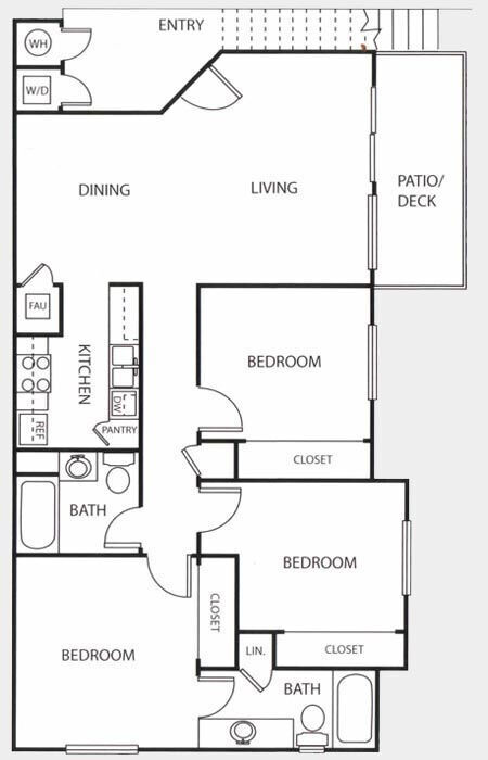 - 3 Bedrooms- 3x2 1100sf3 Beds, 2 Baths, 1100 sq ft- Model Gallery- Floorplans- Photos- Availability Details- Price - Availability Date - Unit - Sq Ft - From $2,659 - Call for Availability - 3x2 1100sf - 1100 sq ft - Model Amenities and Features- Features- Balcony