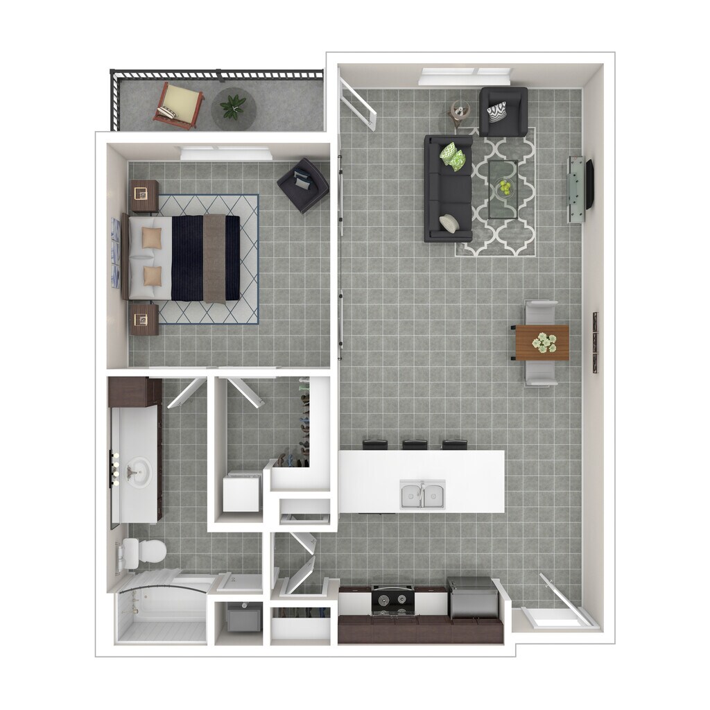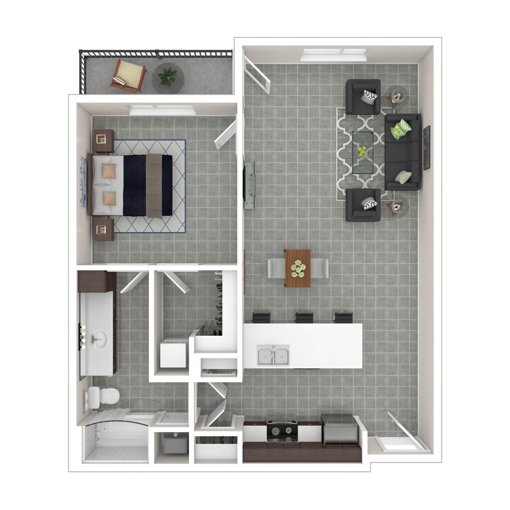 1 Bed, 1 Bath, 697 sq ftModel Gallery