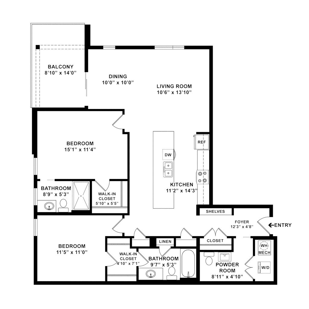 Apartment Model: F - 2.2.5$1,9692 Bedroom, 2.5 Bath, 1100 sq ftAvailable Now![]()