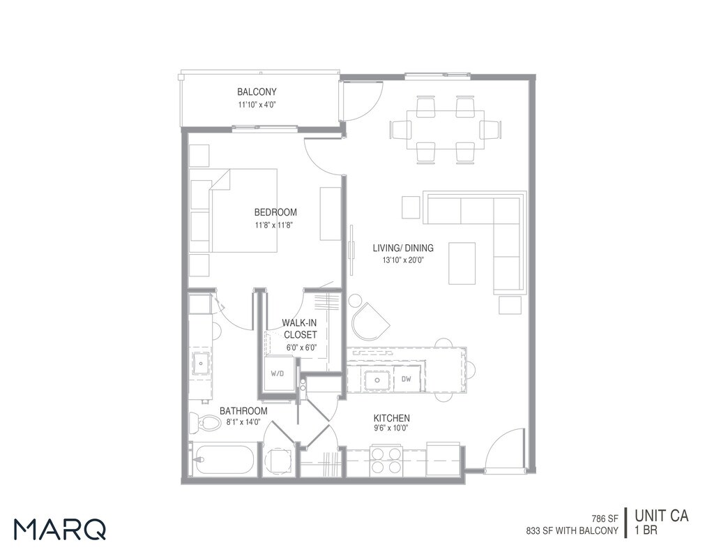 Marq offers Studio to 2 Bedroom apartments starting from $1,499 and having 577–1,366 sq ft. Here is the current pricing and availability:
