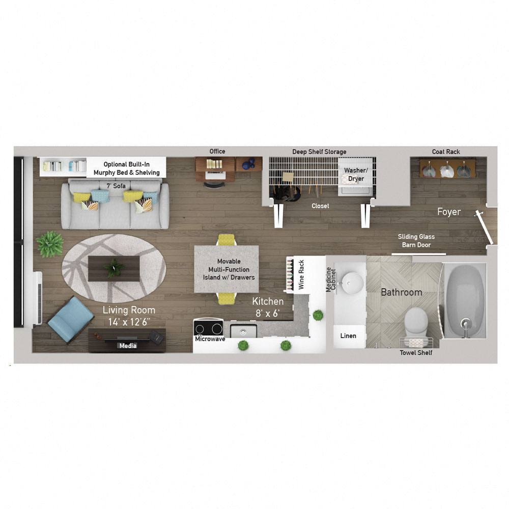 Studio, 1 Bath, 350 sq ftAvailable NowModel Gallery