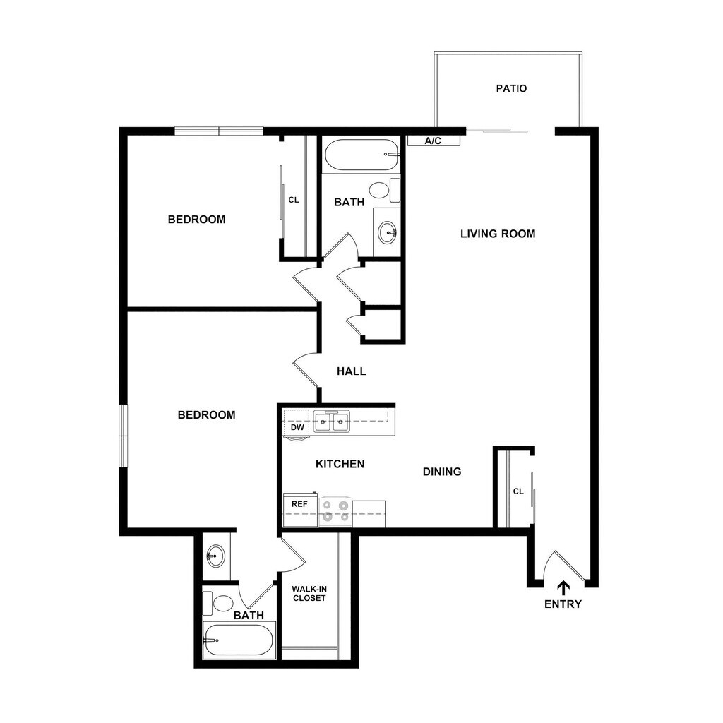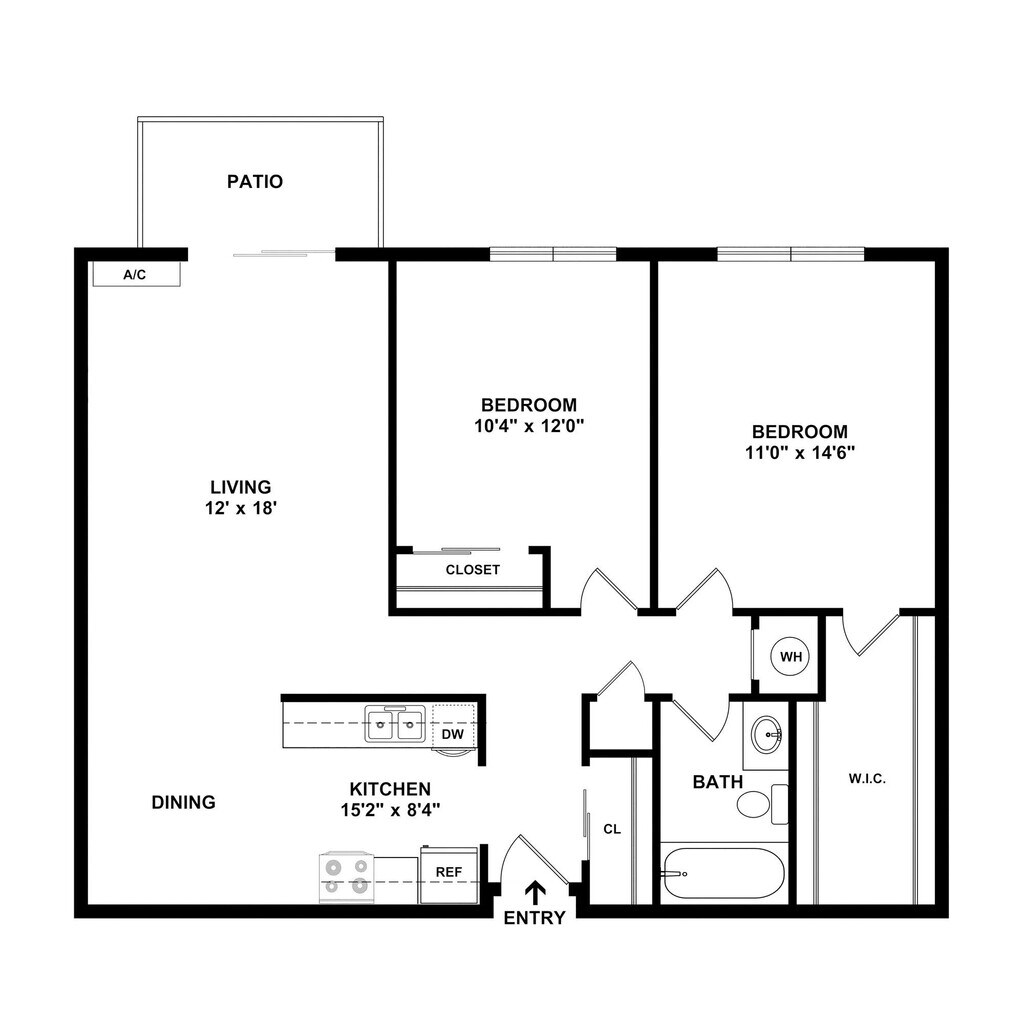 A2 - Cottonwood - Floorplan 3 2 Bedrooms
