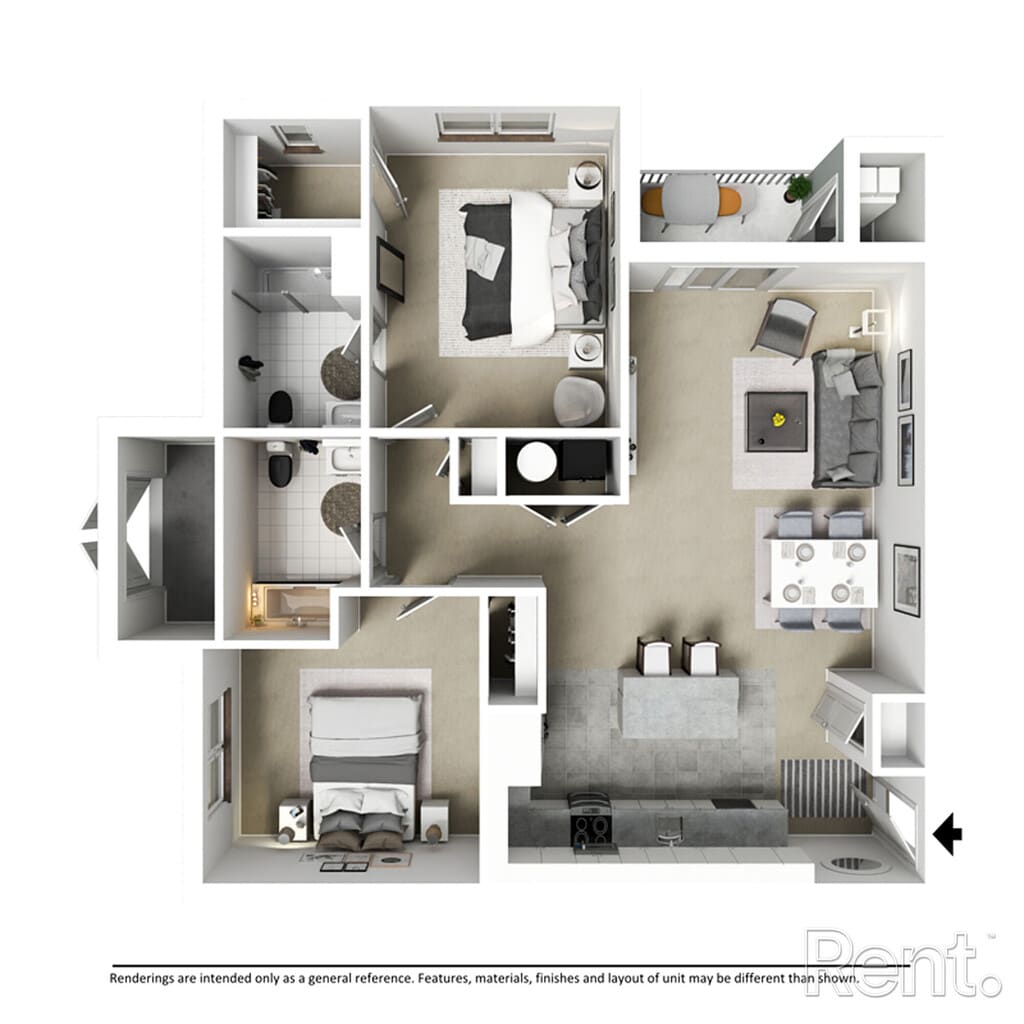 2 Beds, 2 Baths, 1196 sq ftAvailable NowModel Gallery