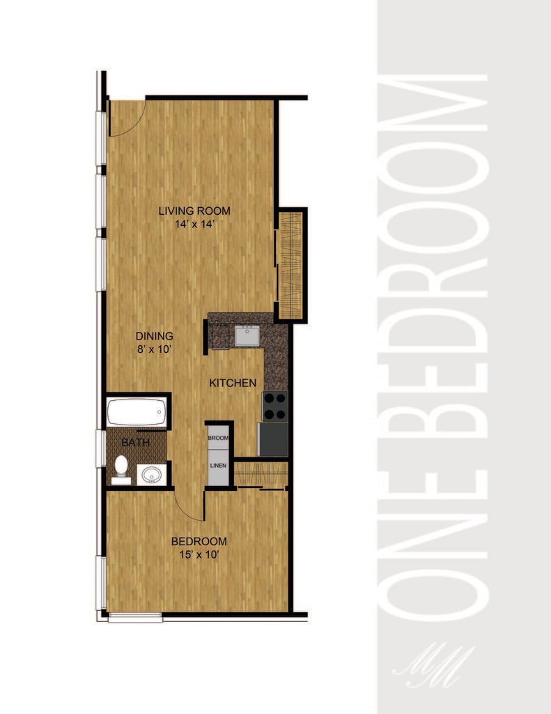 1 Bed, 1 Bath, 580 sq ftModel Gallery