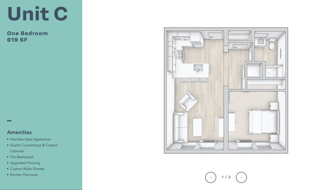 Apartment Unit: 302Apartment Model: 1BR/1.0BA$1,2751 Bedroom, 1 Bath, 611 sq ftAvailable NowApartment Unit: 102Apartment Model: 1BR/1.0BA$1,2491 Bedroom, 1 Bath, 619 sq ftAvailable Now![]()