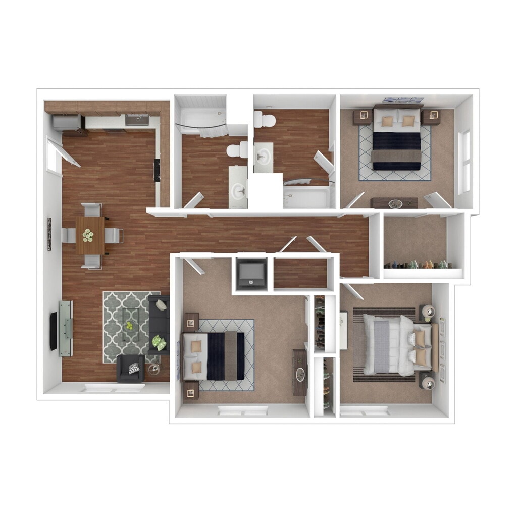 Apartment Model: 3 Bedroom 2 Bath$2,6503 Bedroom, 2 Bath, 1199 sq ftUnavailable![]()