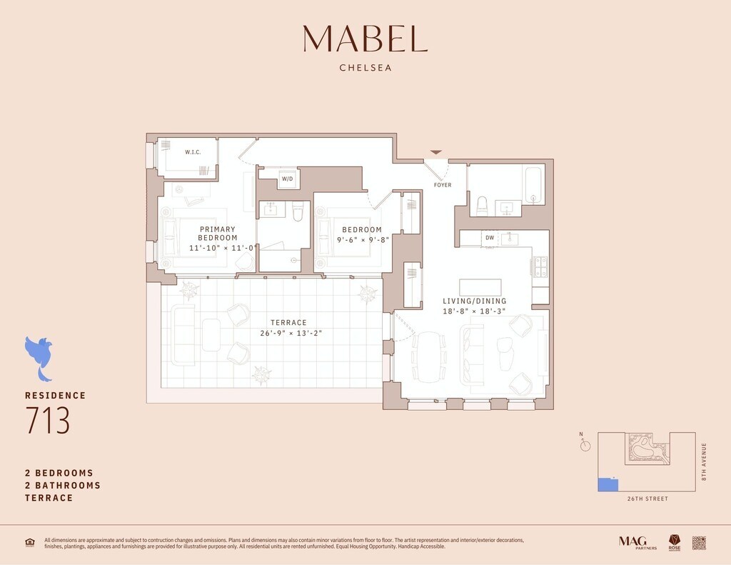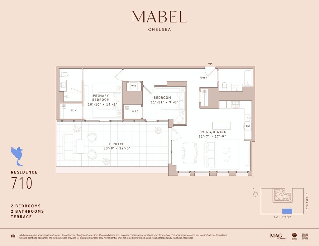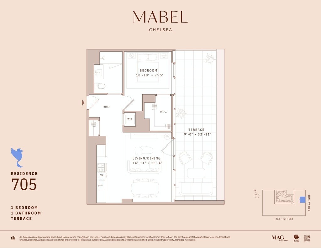 ONE MONTH OP ON SELECT UNITS Now leasing thoughtfully designed studios, 1 and 2 bedrooms Discover Mabel, a rental property that redefines sustainable modern living by blending thoughtful design and natural tranquility. Abundant natural light, lush green spaces, and a commitment to peace and comfort at every level create an environment as serene as it is enchanting. Located in the heart of Chelsea-one of Manhattan's most vibrant and eclectic neighborhoods-Mabel has been thoughtfully crafted by MAG Partners and meticulously designed by the renowned COOKFOX Architects to harmonize the tranquility and beauty of nature with the sophistication and innovation of New York City. As a Passive House building, Mabel is setting new standards for an environmentally conscious lifestyle and reaching a new standard in intelligent design. With world-class amenities, unrivaled craftsmanship, and a seamless connection to nature, Mabel represents the future of city living and reflects the evolution of a home into a sanctuary. Approval Standards: Where applicable, approvals are based on the gross rent, not the net effective rent. Upfront fees to be paid, not included in the monthly rent, are: Application fee: $20 per application Holding fee: $500, applied to the first month's rent, refundable within 72 hours if cancelled Security deposit: Equal to one month's rent Pet fee: $100 per pet/per month Amenity Fee: $150 per month, per person Storage fee: $150 per month Bike storage fee: $15 per month per bike Resident pays for electricity, cable and internet Rose Associates is the exclusive broker/agent for the Landlord (Landlord's Agent) for this property. This advertisement is not intended to create any other agency relationships between a real estate licensee and the Landlord. Prospective renters, their brokers and/or agents understand that neither the Landlord nor Landlord's Agent will charge or collect fees to a prospective renter in connection with this property except for fees as permitted by law and disclosed above. Neither Landlord nor Landlord's Agent assume responsibility for any brokerage fees incurred by a prospective renter in connection with this property under any direct agreement they have entered into with another real estate licensee. This listing is being advertised to prospective renters only and should not be re-published.