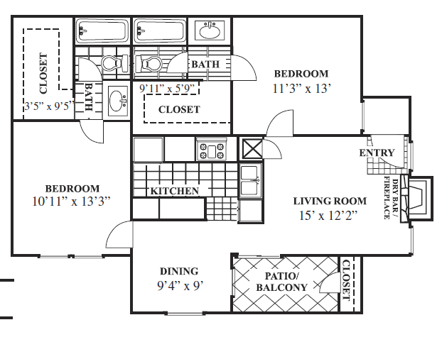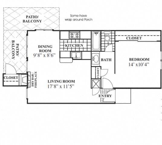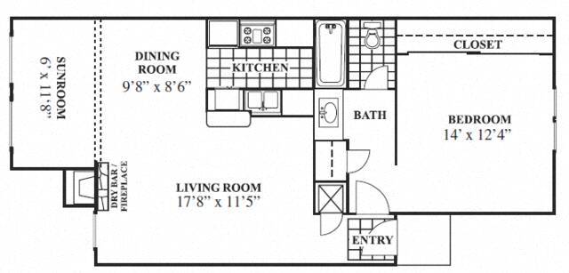 Apartment Model: A1From $9501 Bedroom, 1 Bath, 563 sq ftAvailable Now![]()
