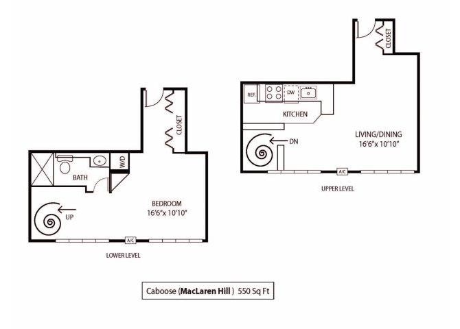 Caboose - Floorplan 1 Apartment Unit: 10-308Apartment Model: Caboose$1,399Studio, 1 Bath, 550 sq ftAvailable April 2, 20261 Bedroom
