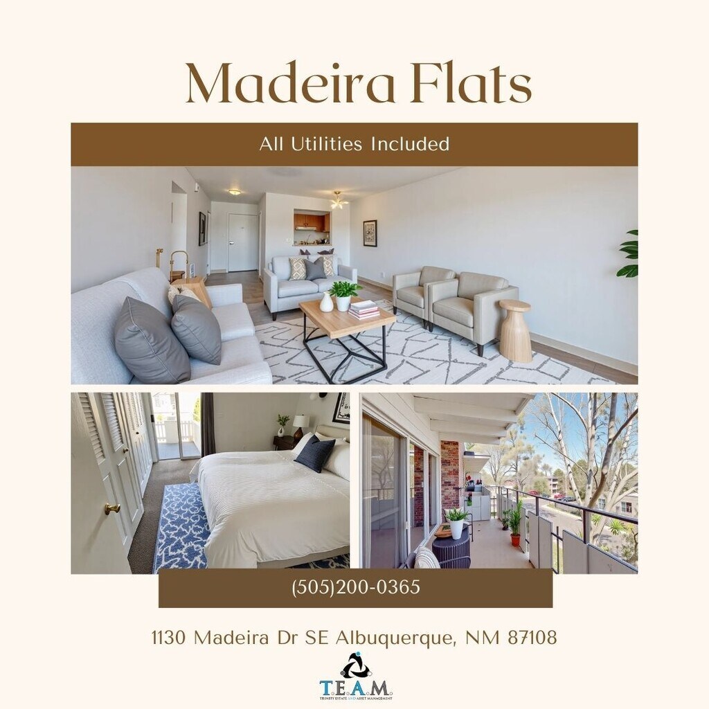 Madeira Flats- Utilities Included! has 5 parks within 10.6 miles, including Ernie Pyle House and Library, Sunshine Building, Rio Grande Botanical Garden, Manzano Mountain Retreat, and Sandia Peak Ski Area.