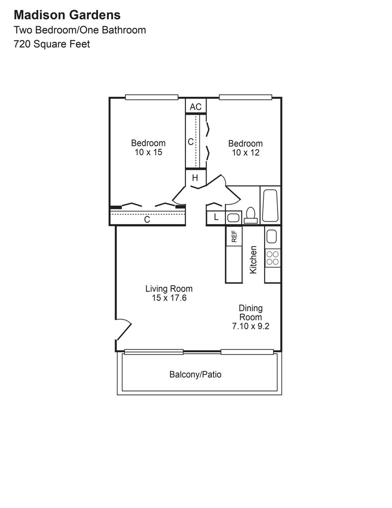 Madison Gardens Apartments offers 2 Bedroom apartments starting from $1,600 and having 720–796 sq ft. Here is the current pricing and availability: