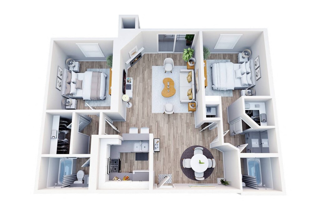 Apartment Model: 2 Bed 2 Bath B$2,9332 Bedroom, 2 Bath, 1004 sq ftAvailable Now![]()