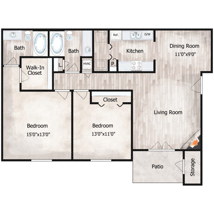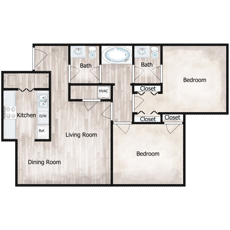 1 Bed, 1 Bath, 856 sq ftAvailable NowLargest 1 BedroomThis is the largest 1 Bedroom at this PropertyModel Gallery