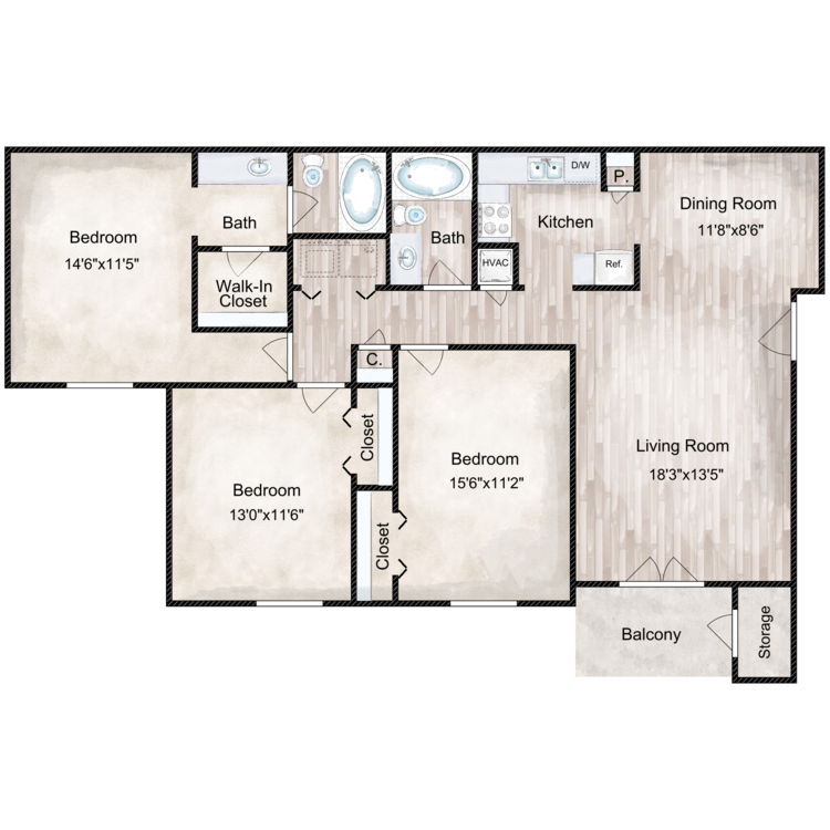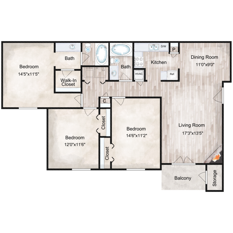 Apartment Model: AnsleyFrom $9151 Bedroom, 1 Bath, 792 sq ftAvailable Now![]()