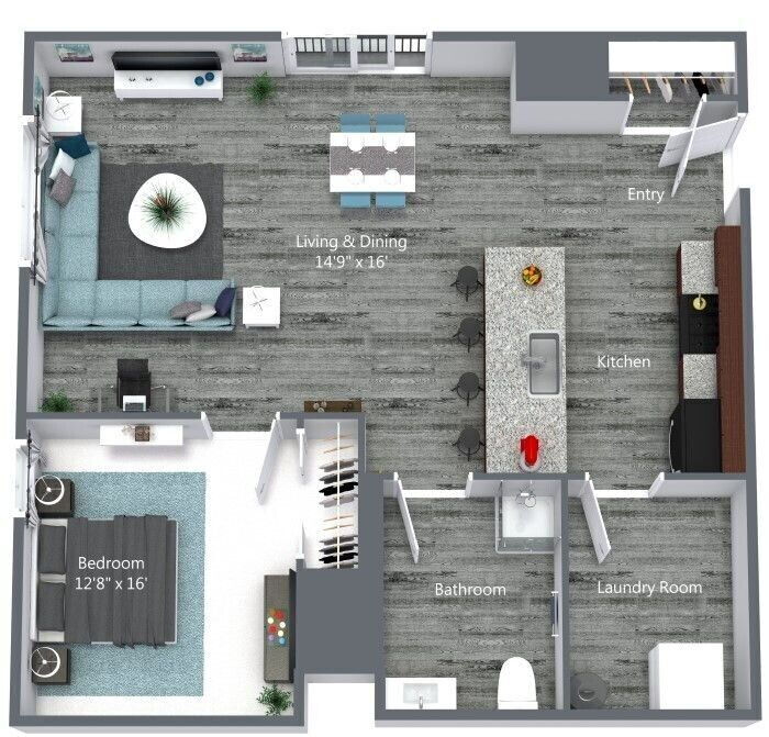 1 Bed, 1 Bath, 625 sq ftModel Gallery
