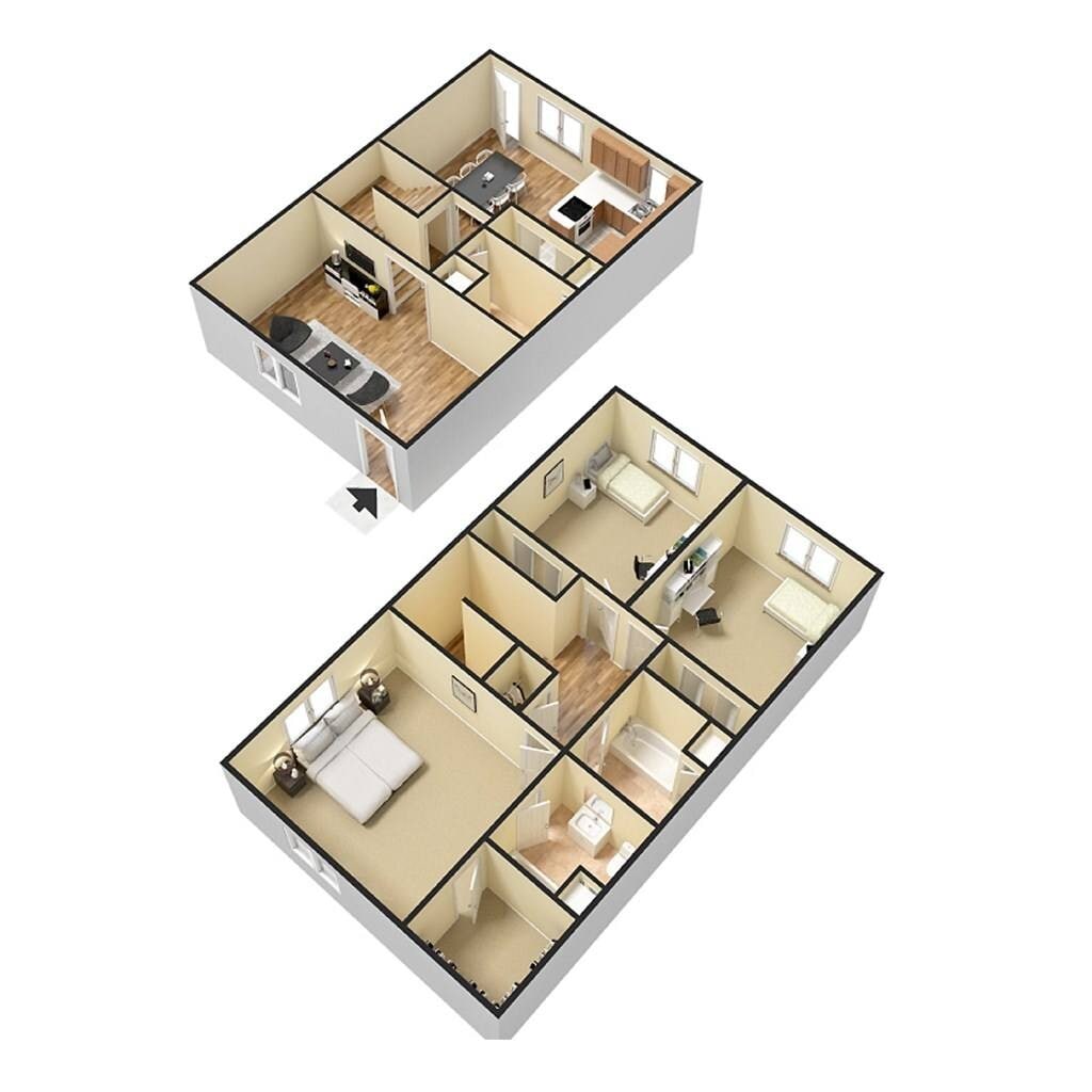 - 3 BedroomsShow Unavailable Floorplans- C1 Three Bedroom Townhome- $1,2303 Beds, 2.5 Baths, 1446 sq ftAvailable Now- Model Gallery- Floorplans- Availability Details- Price - Availability Date - Unit - Sq Ft - $1,230 - Available Now - 15-2405G - 1446 - Model Amenities and Features- Features- Air Conditioning