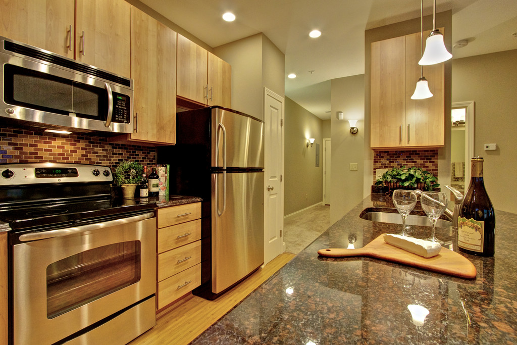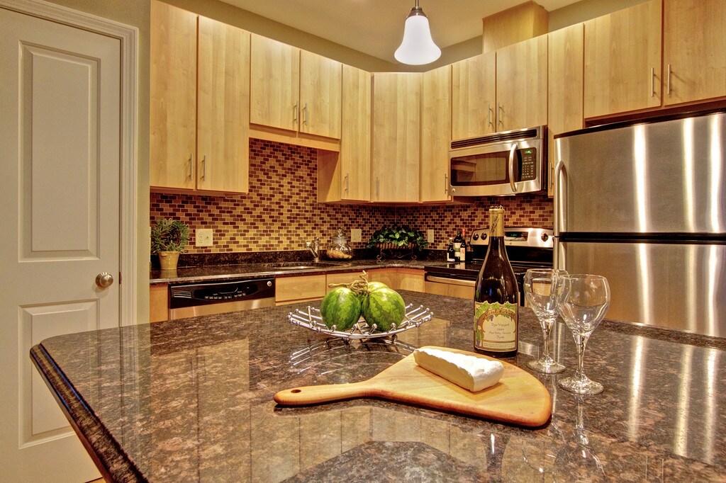 - Sleek granite counter tops
