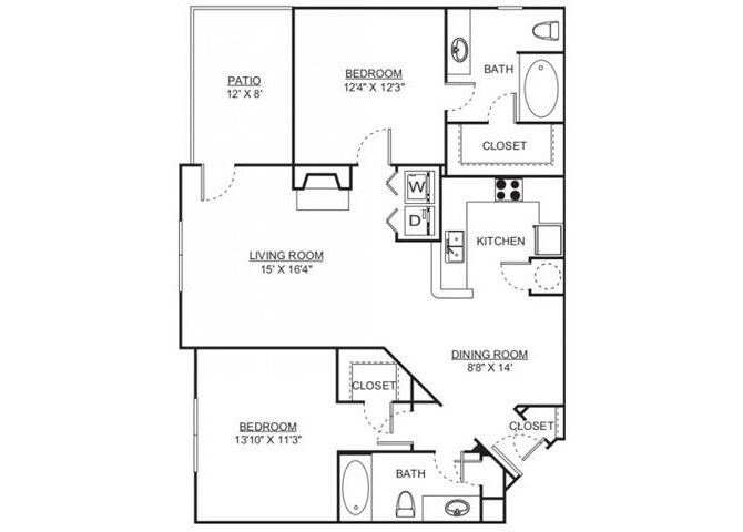 2 Beds, 2 Baths, 1235 sq ftAvailable NowLargest 2 BedroomThis is the largest 2 Bedroom at this PropertyModel Gallery
