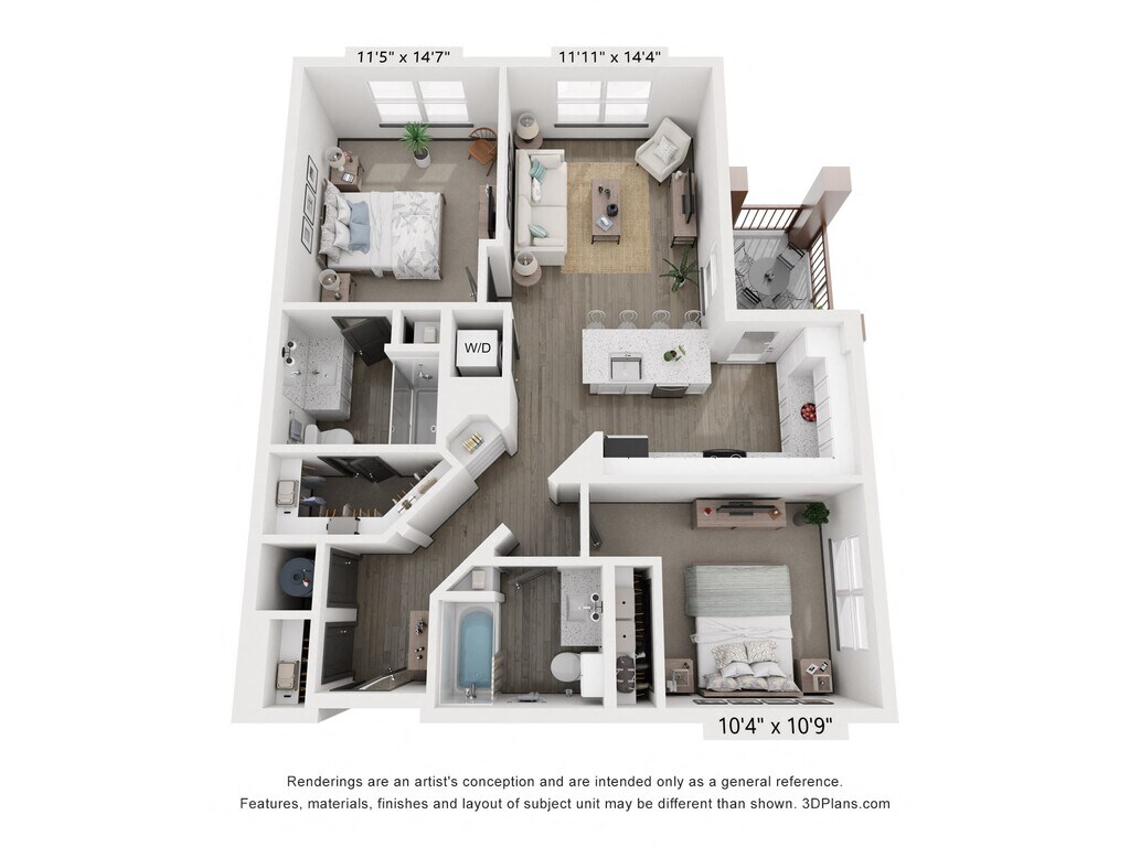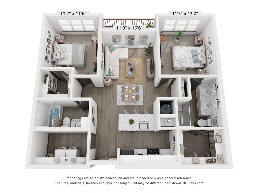 2 Beds, 2 Baths, 1006-1066 sq ftAvailable NowLargest 2 BedroomThis is the largest 2 Bedroom at this PropertyModel Gallery