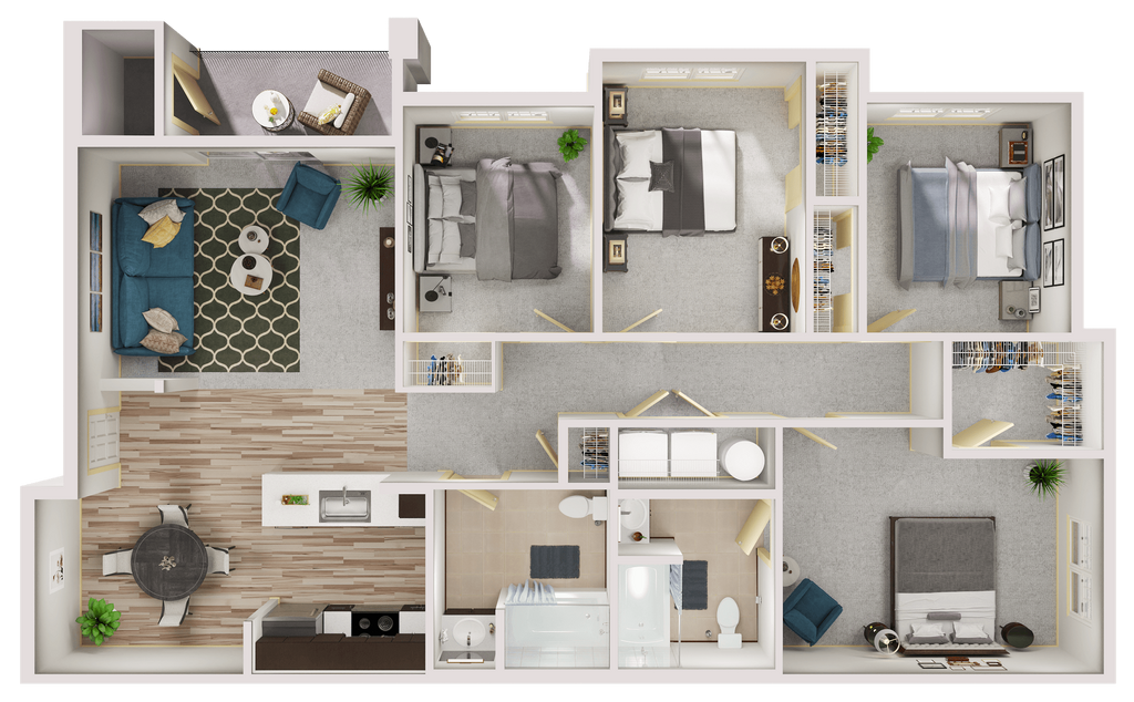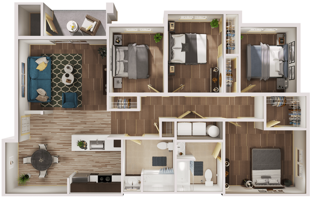 Apartment Model: OlympusFrom $1,9853 Bedroom, 2 Bath, 1295 sq ftAvailable Now![]()
