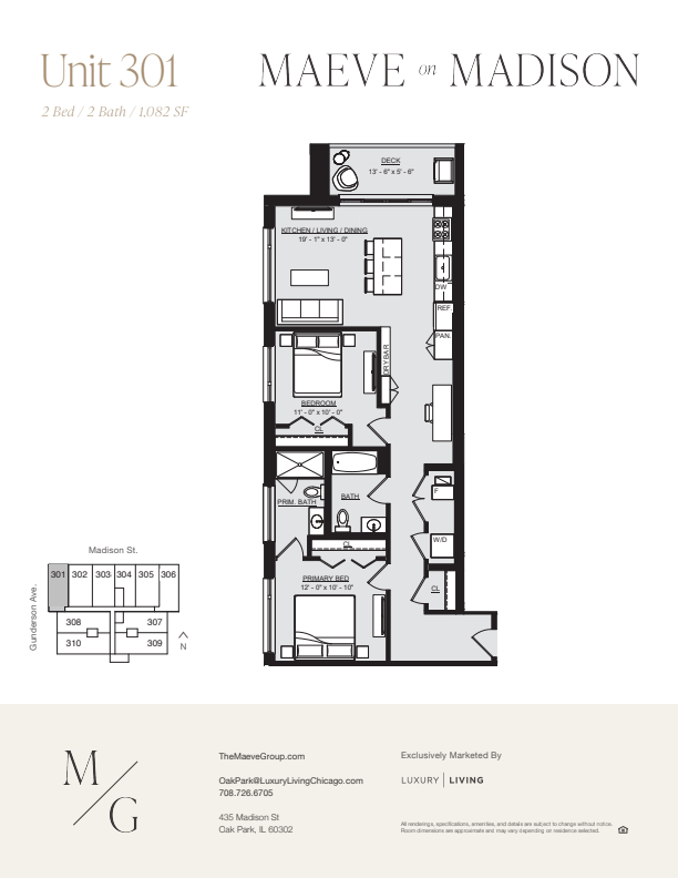 Maeve on Madison is the perfect place to call home for those looking for luxury living in a vibrant and charming community. This newest addition to the Oak Park neighborhood offers spacious and modern apartments with condo-quality finishes, providing residents with a comfortable and stylish living experience. Inside the residences, you will find top-of-the-line features such as stainless steel appliances, kitchen islands, white quartz countertops, KitchenAid appliances, high ceilings, porcelain bathroom tiles, LG in-unit washer and dryer, and custom closets by The Container Store. Whether you enjoy entertaining guests or simply relaxing after a long day, the private balcony access will provide the perfect setting to take in the breathtaking views of the surrounding neighborhood. Maeve on Madison apartments offer not only luxurious living spaces, but also a range of amenities that cater to the needs of modern city dwellers. The outdoor community deck provides the perfect place to relax and enjoy the beautiful surroundings of Oak Park, while EV charger outlets and a heated garage offer convenient and eco-friendly transportation options. The on-site management team is dedicated to providing high-quality service and addressing residents' needs, and 24/7 emergency response maintenance ensures prompt resolution of any issues. Beyond the apartments, Maeve on Madison is situated in a charming and vibrant village located just outside of Chicago in Oak Park. With its beautiful tree-lined streets, stunning architecture, and diverse community, Oak Park offers a high quality of life to its residents. The village boasts an excellent public transportation system, a bustling downtown area filled with shops and restaurants, and an award-winning school district. Oak Park is known for its commitment to sustainability, making it an ideal place for environmentally conscious individuals and families. *Prices listed may reflect net effective rental rates and include concessions (free rent) and/or special offers. Lease terms, pricing, and availability are subject to change at any time. Ask our leasing team for more details.