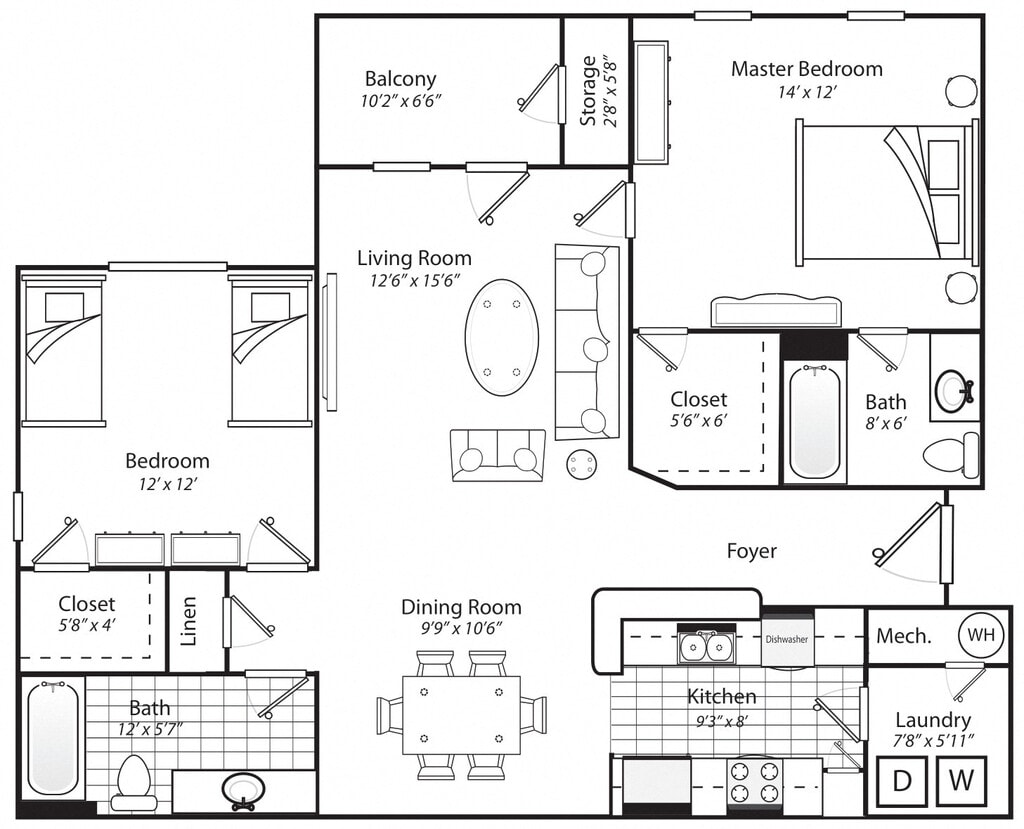 Apartment Model: Two Bedroom Two Bathroom MKT$1,3722 Bedroom, 2 Bath, 1175 sq ftAvailable Now![]()