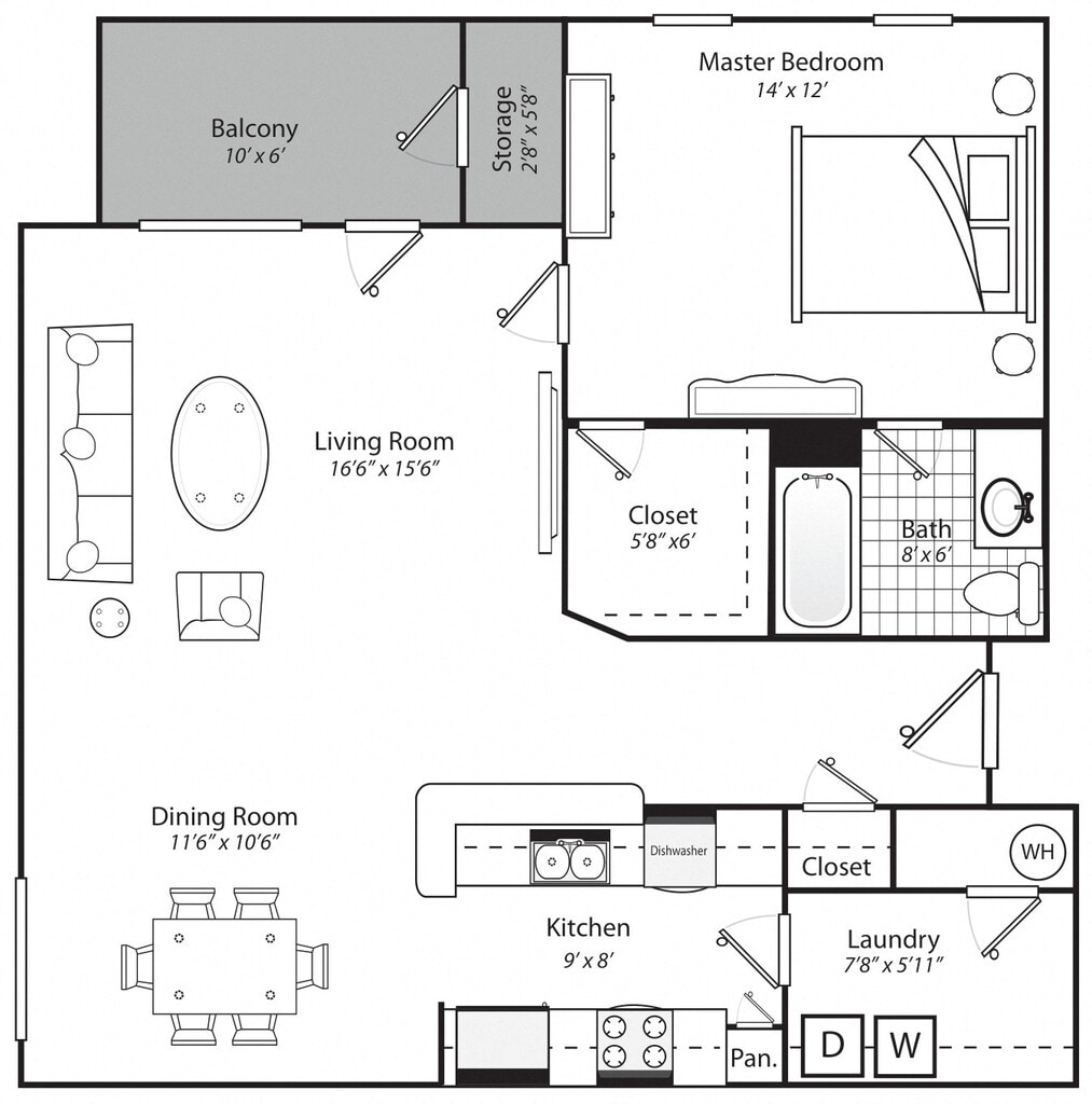 1 Bed, 1 Bath, 975 sq ftAvailable NowModel Gallery