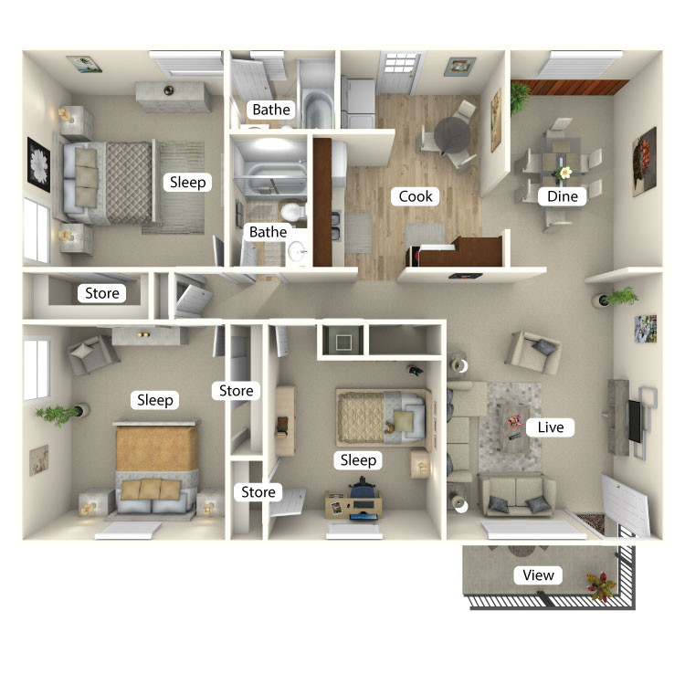 3 Beds, 2 Baths, 1400 sq ftModel Gallery