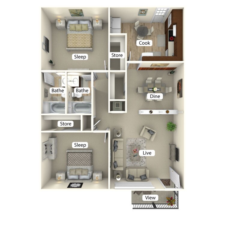 2 Beds, 2 Baths, 1150 sq ftModel Gallery