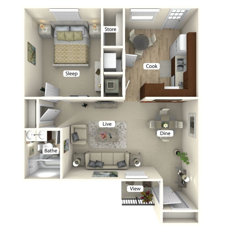 1 Bed, 1 Bath, 700 sq ftModel Gallery
