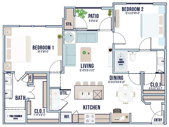 Apartment Model: B12 Bedroom, 2 Bath, 1004 sq ftUnavailableFloorplansPhotos![]()