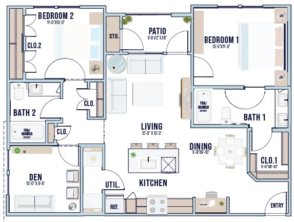 2 Beds, 2 Baths, 1017 sq ftModel Gallery