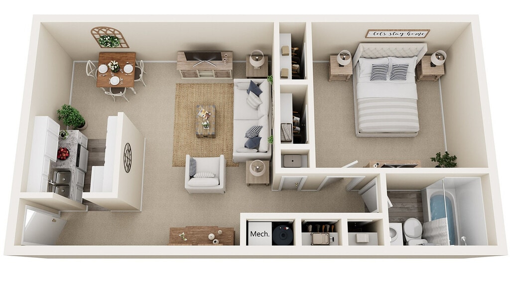 2 Beds, 1 Bath, 850 sq ftModel Gallery