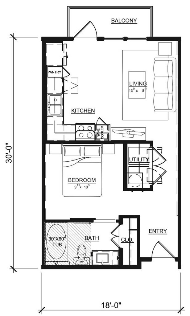 Studio, 1 Bath, 590 sq ftAvailable NowModel Gallery