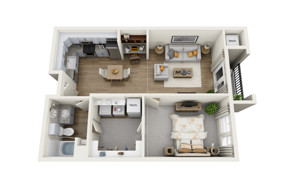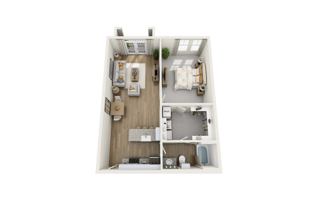 1 Bed, 1 Bath, 647 sq ftAvailable NowModel Gallery