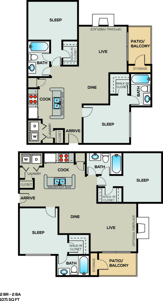 2 Beds, 2 Baths, 1071 sq ftAvailable NowModel Gallery