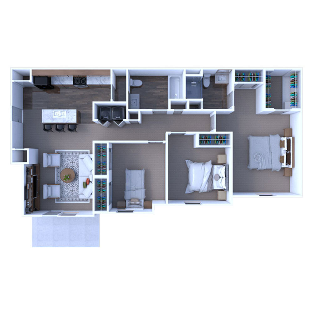 - 1, 2, and 3-Bedroom Open Concept Layouts