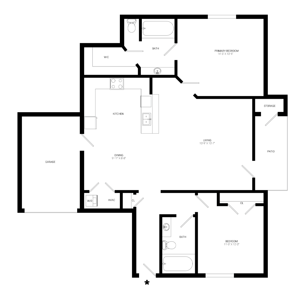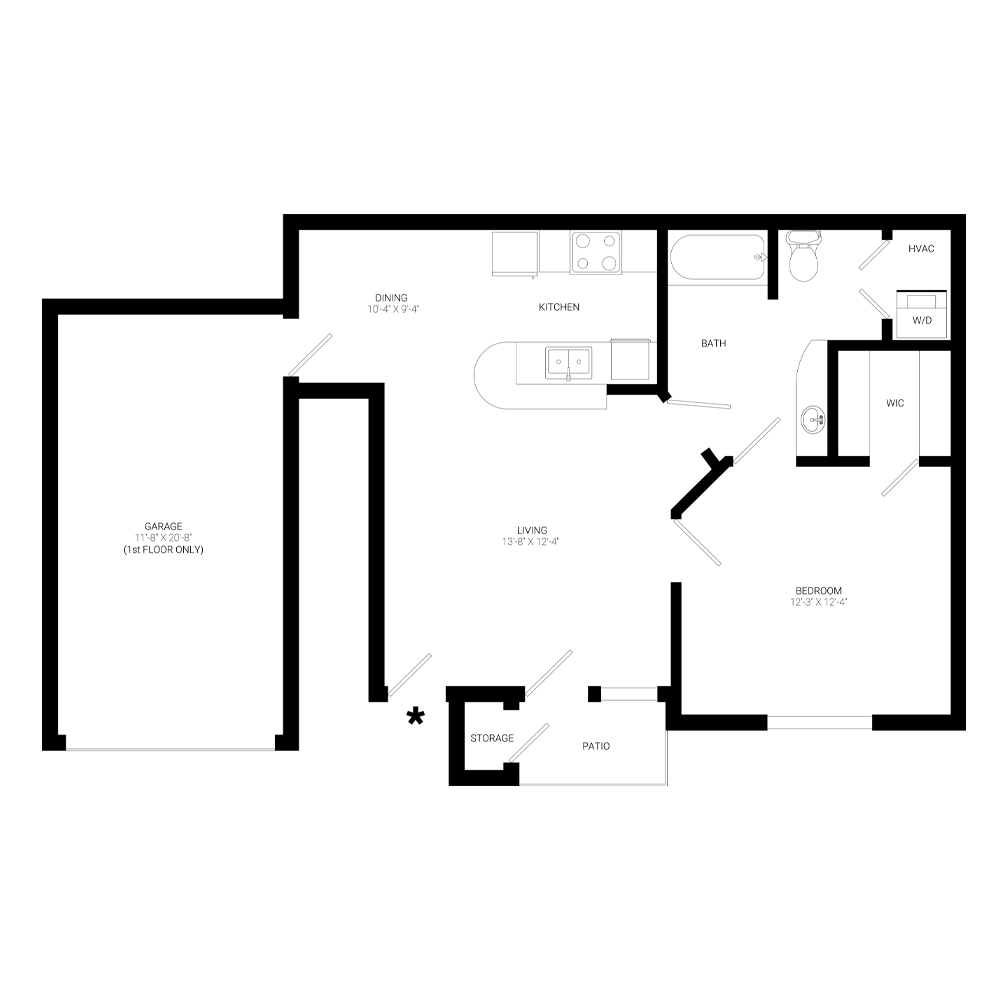 Apartment Model: StarFrom $1,3341 Bedroom, 1 Bath, 740 sq ftUnavailableStar - Floorplan 1 2 Bedrooms