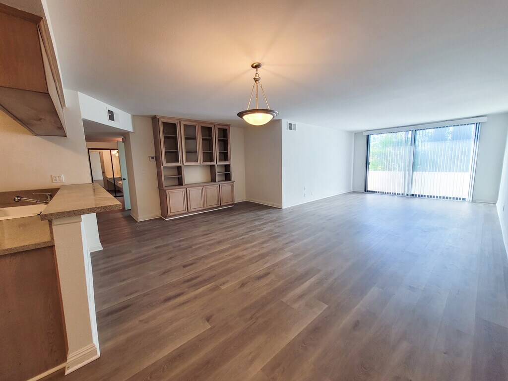This top floor unit features 1400 square feet living space with plank flooring through out. The kitchen offers a full appliance package and ample dining space. A long private balcony is directly off the Living area and primary bedroom. Unit is situated at the back of the property, away from street noise with a scenic treelined view. The property features A laundry room on each floor, gated secured parking, Secured entry system, a Sparkling pool, Eleva