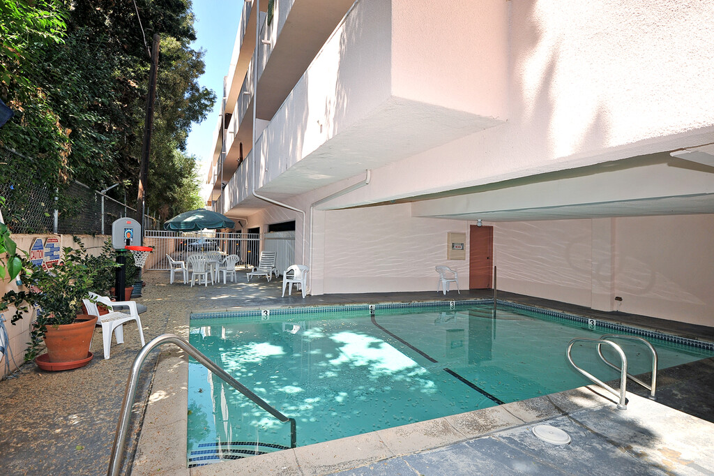 The property features A laundry room on each floor, gated secured parking, Secured entry system, a Sparkling pool, Elevator and On-site building manager.