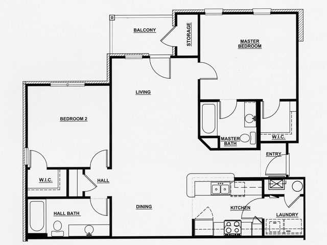 Two Bedroom Two Bathroom 60% - Floorplan 2 3 Bedrooms