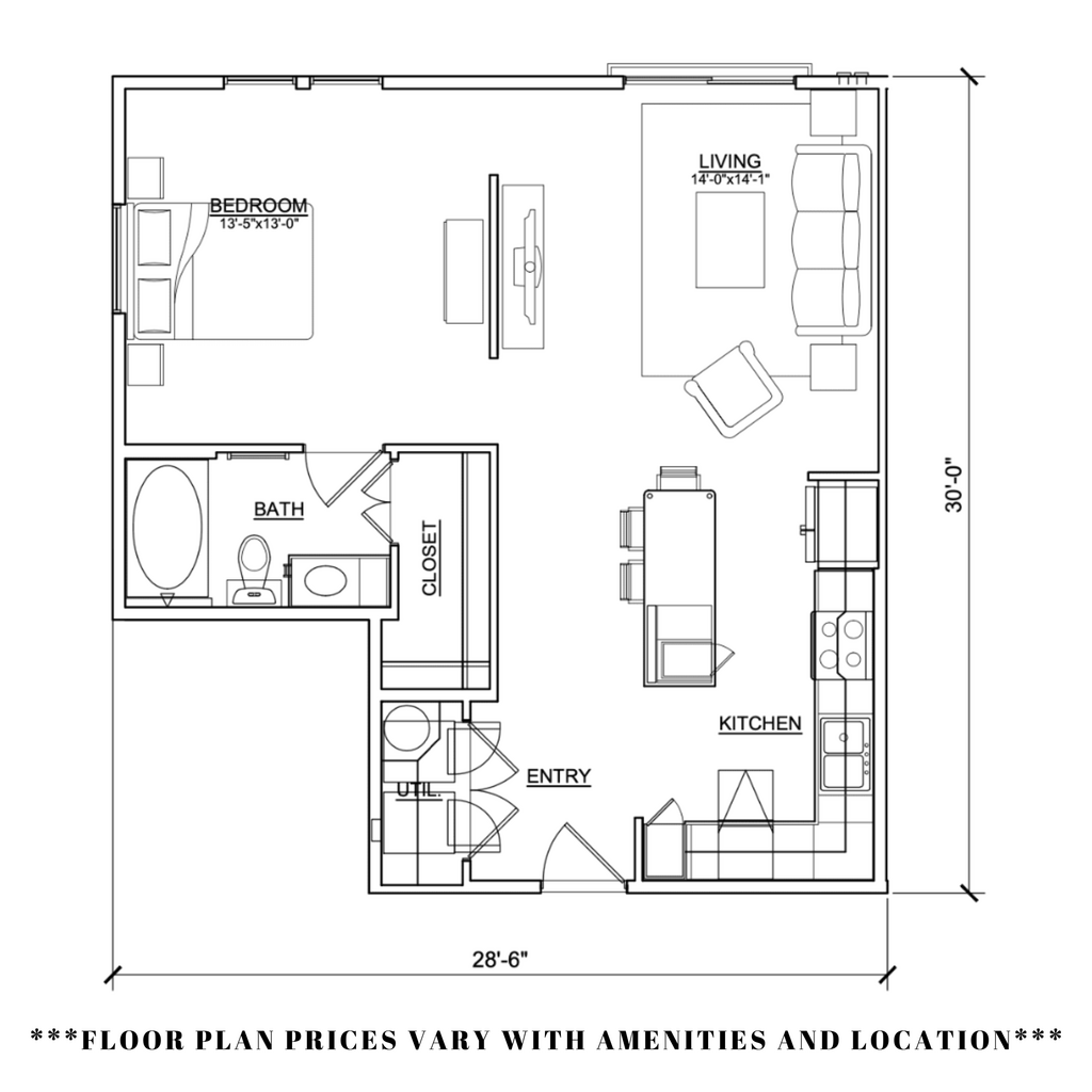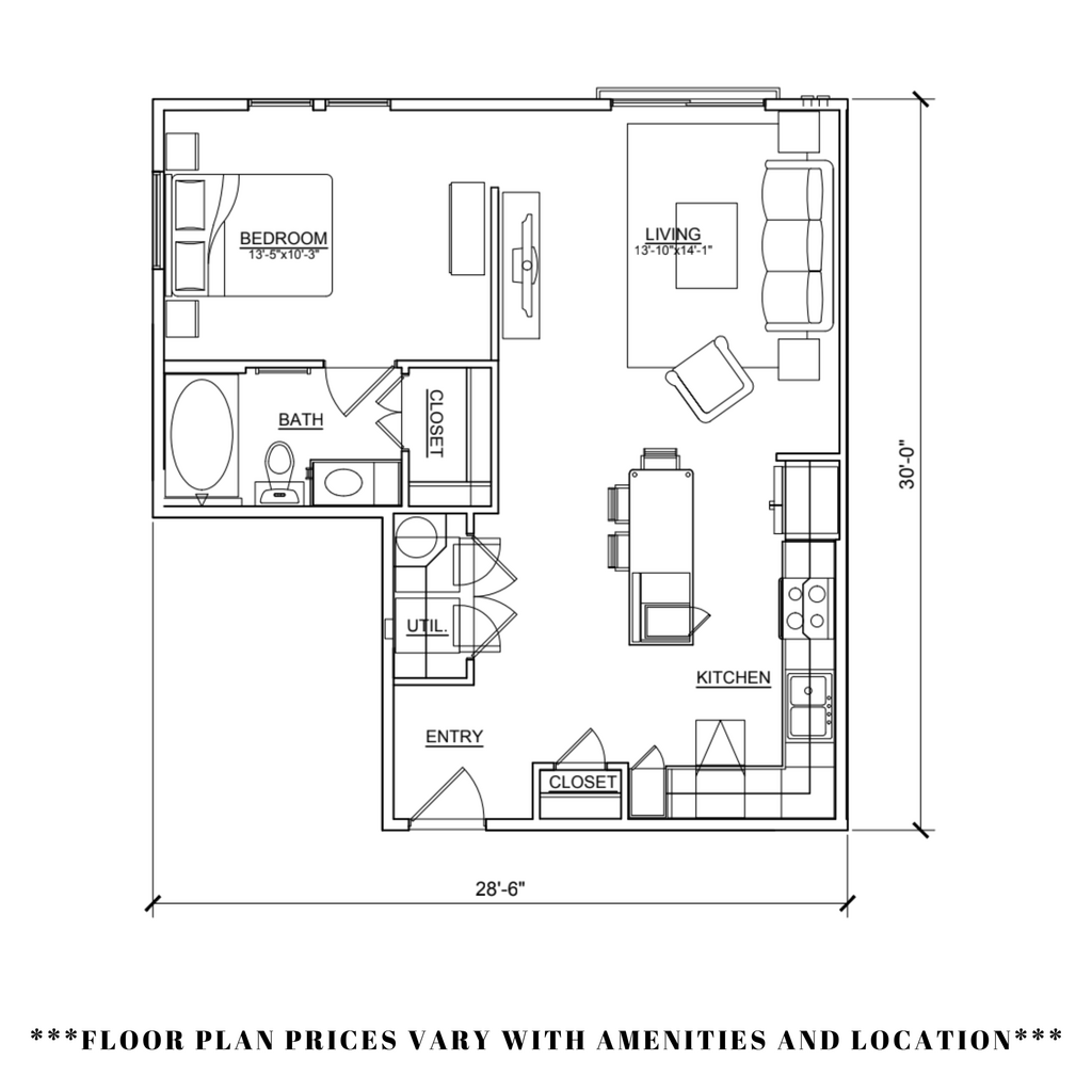 Studio, 1 Bath, 590 sq ftAvailable NowModel Gallery