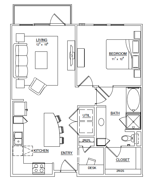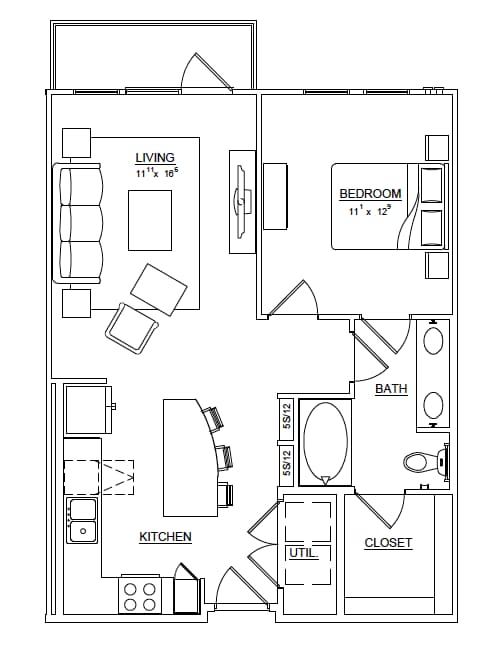 1 Bed, 1 Bath, 516 sq ftModel Gallery