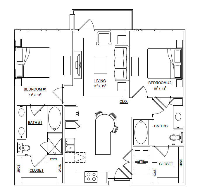 B2 Gardenia 2x2 1054sf - Floorplan 1 B4 Iris 2x2 1103sf