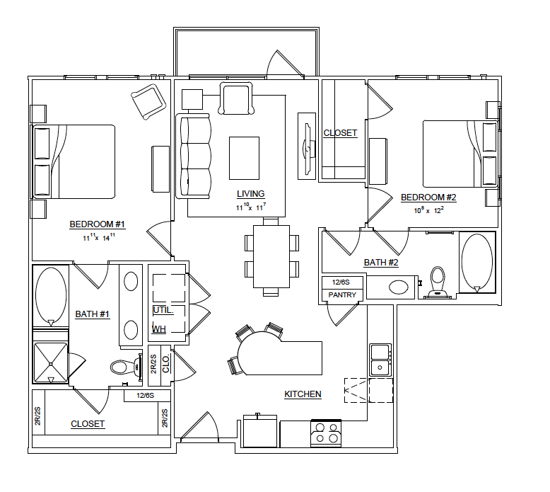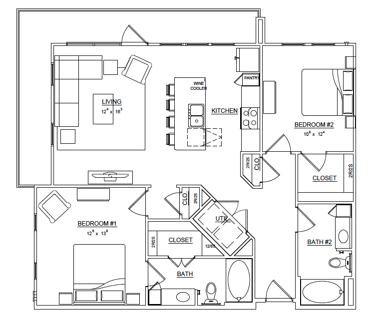 2 Beds, 2 Baths, 1130 sq ftLargest 2 BedroomThis is the largest 2 Bedroom at this PropertyModel Gallery