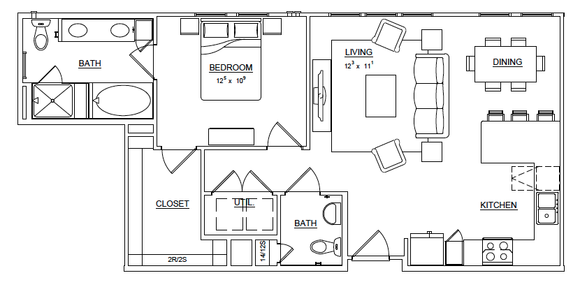 B3 Primrose 2x2 1130sf - Floorplan 1